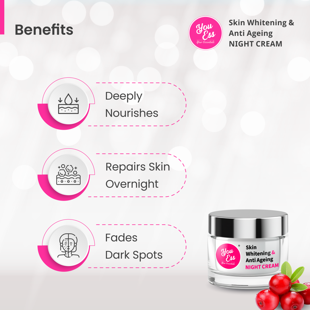 - Say goodbye to dark spots and uneven tones as you sleep.